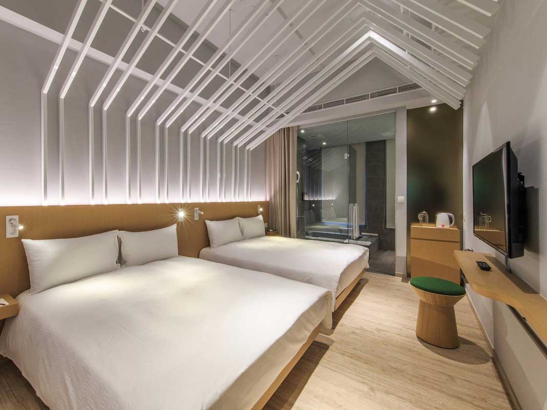 Hotel Pin Jiaoxi draws inspiration from the dazzling feathers and beautiful figure of the Taiwan Blue Magpie to symbolize the warm hospitality and local artistry with which we welcome every guest on their journey. Nestled in the heart of Jiaoxi’s hot spring area, the hotel features specially designed hot spring spa facilities. Outdoors, guests can enjoy a panoramic view of the sky while experiencing the soothing sensation of the spa, while indoors, children can play to their hearts’ content on the water slides and in the dancing fountain.