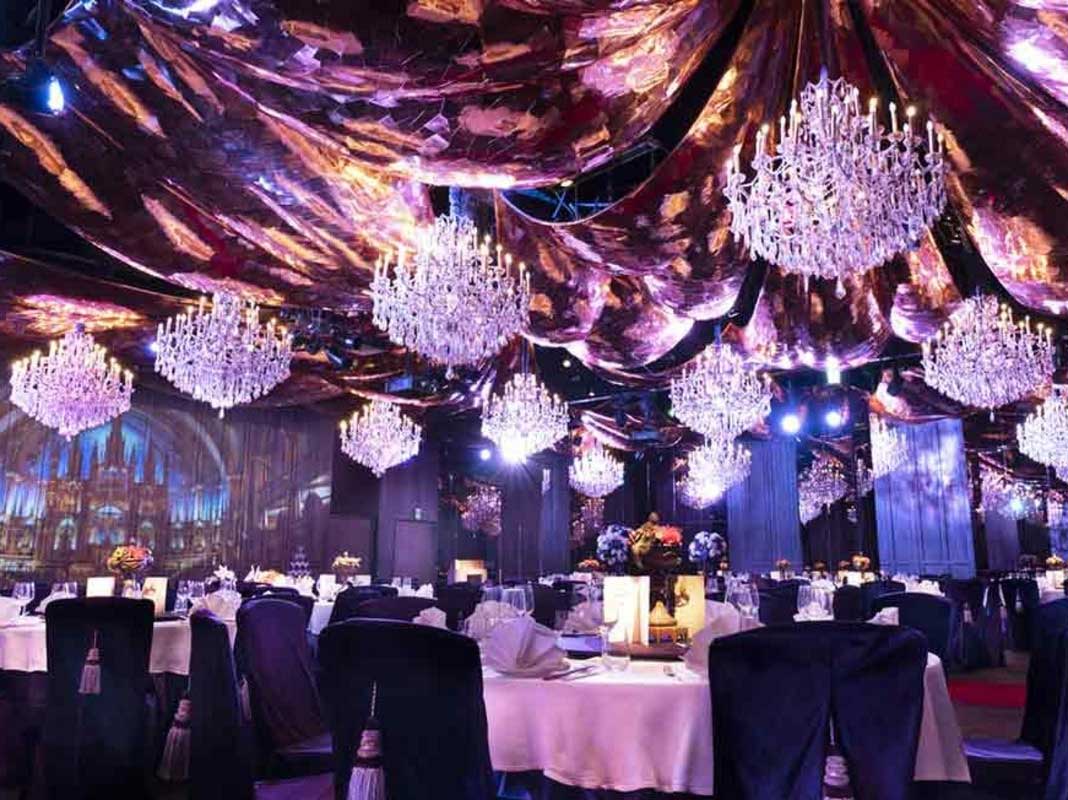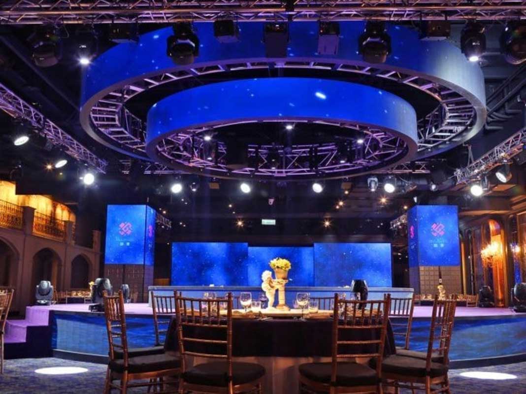 Gala de Luxe Xinzhuang is a versatile banquet venue featuring a concert stage design, with a flexible and dynamic space featuring LED screens and a double-tiered circular stage. The grand space has a ceiling height of 6 meters, and introduces Taiwan's first-ever services of "Music Planner" and "Music Director" that assist guests in designing unique personalized theme songs. Additionally, the venue plans for the presentation of 100 sets of computerized lights and audio-visual effects, creating a personalized banquet and memorable experience for guests.