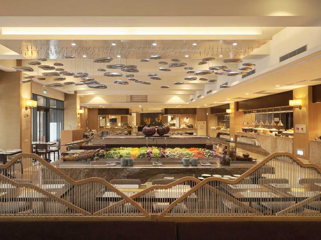 SUNNY BUFFET boasts glass curtain walls for natural daylight and a 16-meter-high ceiling design, complemented by large green plants, creating an ambiance akin to an outdoor café where you can bask in the sunlight during the day and enjoy the starry night sky's romance. The pillar-less high-ceiling banquet hall and independently adjustable meeting rooms can accommodate up to a thousand people, making it suitable for hosting international-scale events, banquets, conferences, seminars, and an excellent choice for weddings. Additionally, there are several private dining rooms available for intimate gatherings.