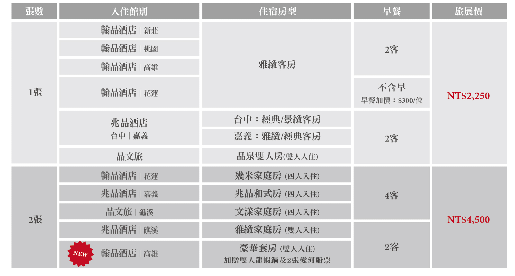 3. 翰品高雄、兆品嘉義各1晚 (含早餐)